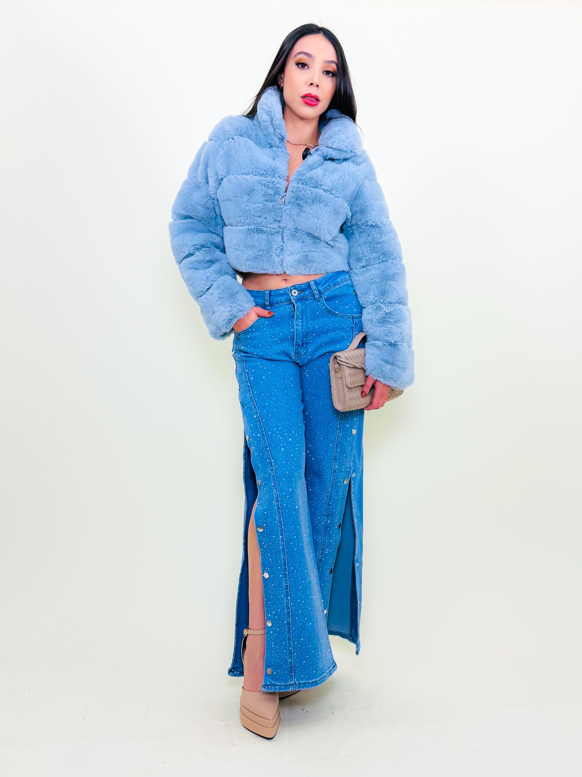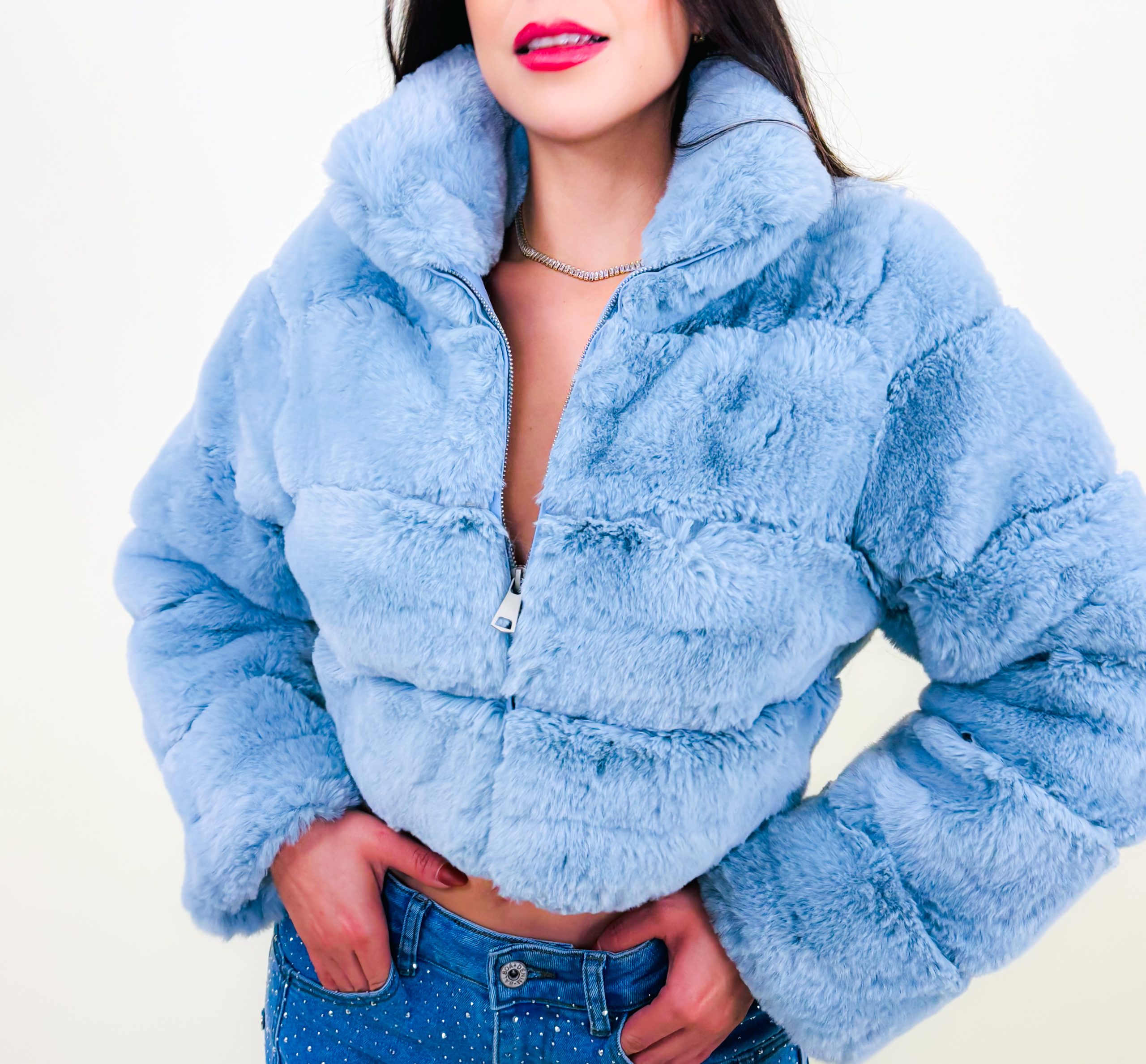 Abrigo Corto Baby Blue Peluche