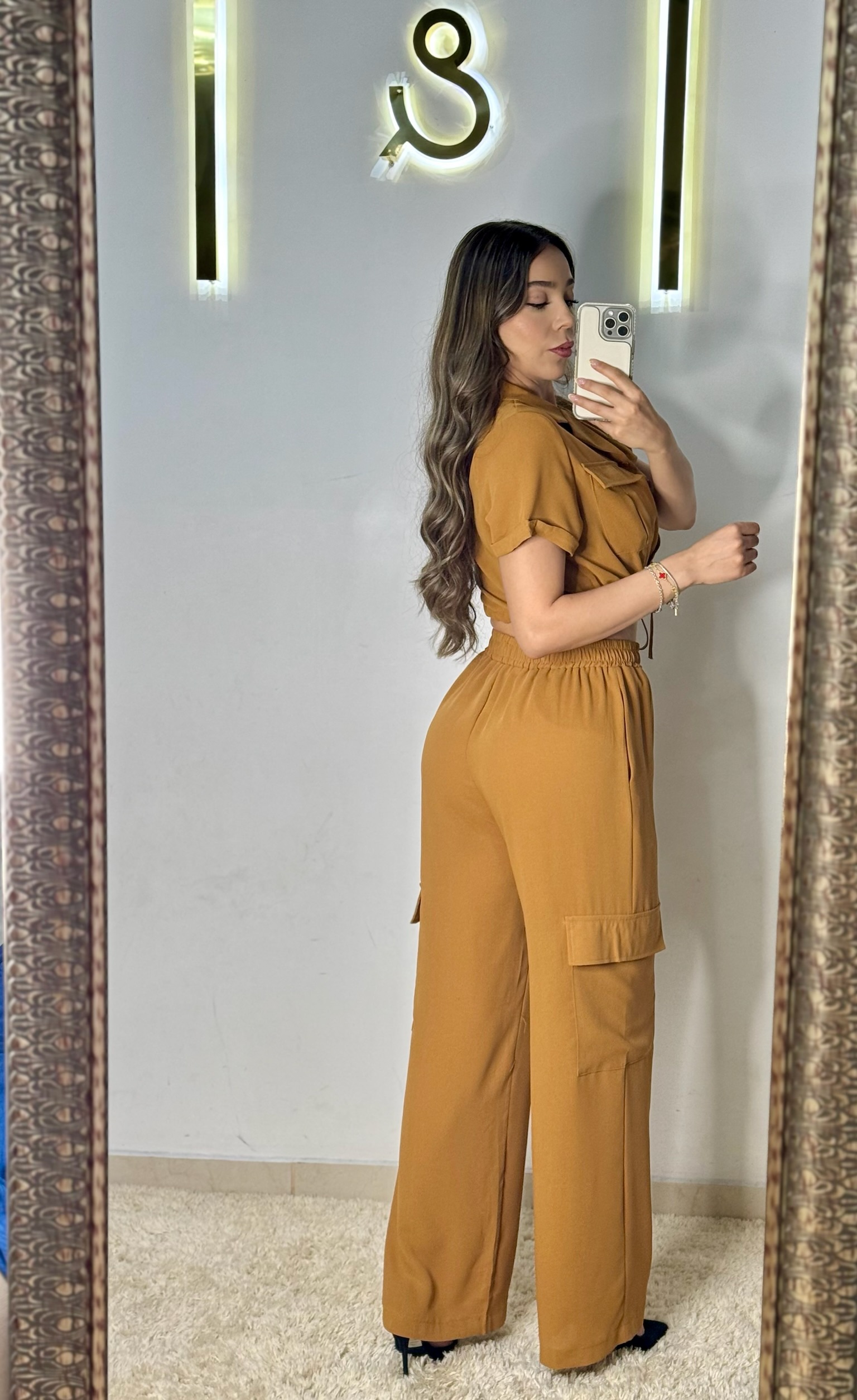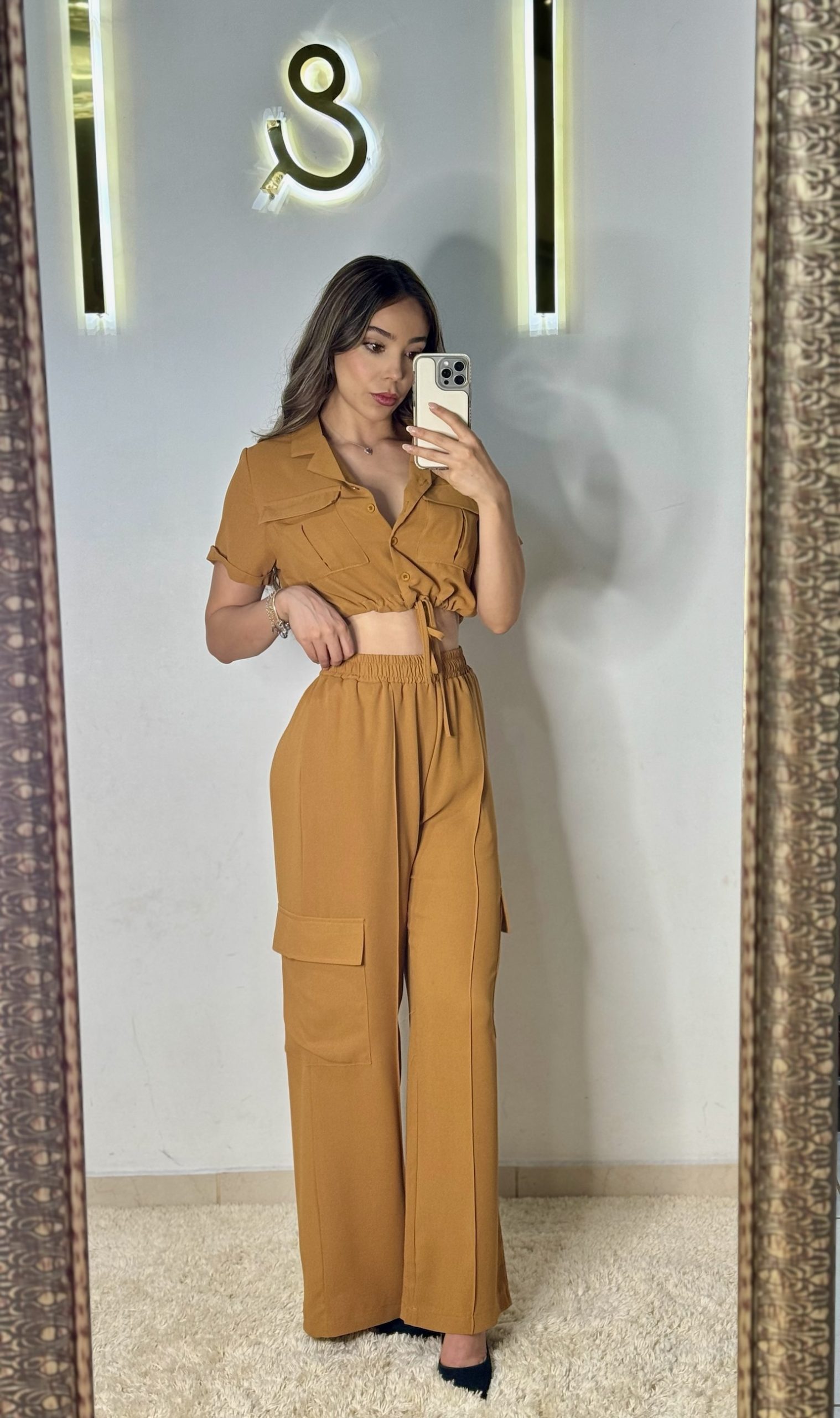 Set de dos piezas color camel.